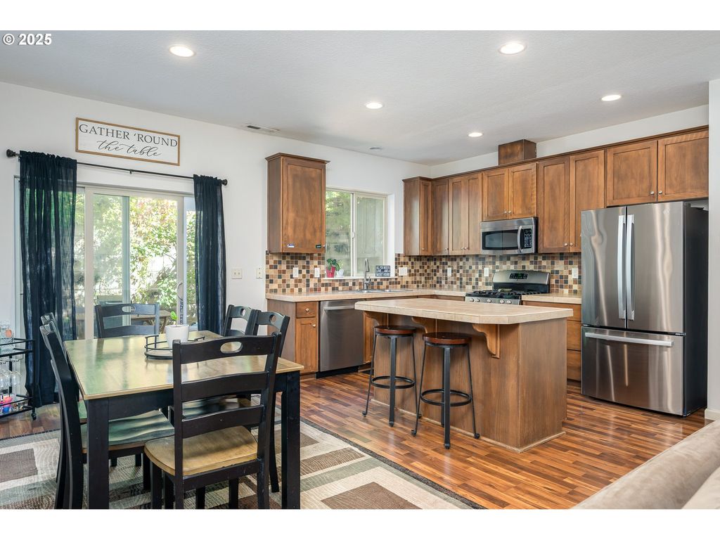 Welcome to your dream townhome in the highly sought-after Wind Swept Waters community! This stunning end-unit offers a bright, open-concept layout with soaring 9' ceilings, a cozy gas fireplace, and a chef-inspired kitchen featuring stainless steel appliances, a large island, and a walk-in pantry. The spacious primary suite is your private retreat with its own bath, while the versatile loft is perfect for a home office, media room, or play area. Fresh interior paint and plush newer carpet make this home feel brand new. Step outside to your private, fenced patio with sprinklers - ideal for summer BBQs and relaxing evenings. Enjoy year-round comfort with central air, plus the unbeatable location just steps from parks, recreation facilities, and a dog park.