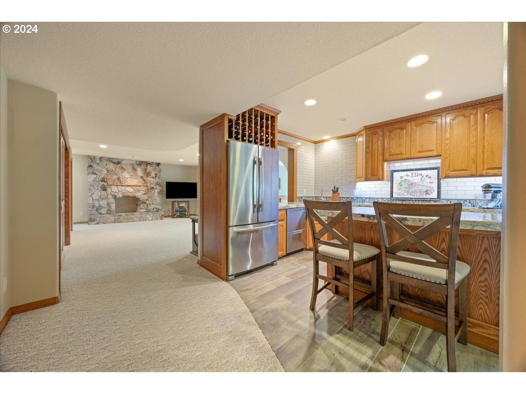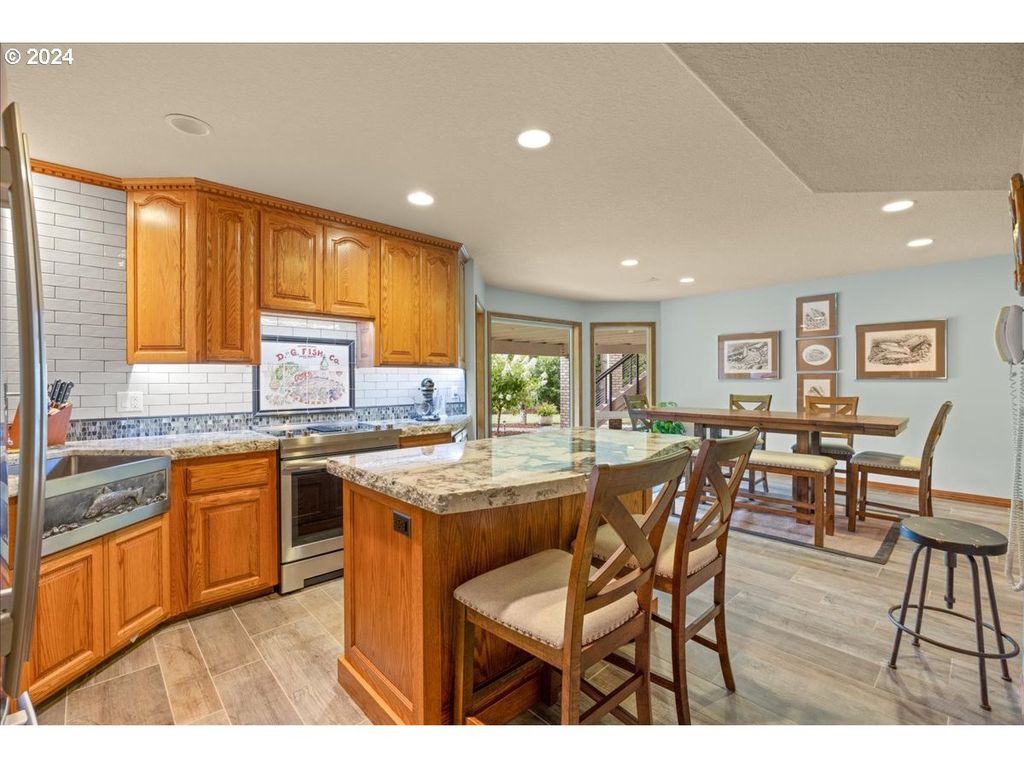 Clackamas River Frontage just outside of Carver on a private road on a gate secured 3/4 acre level lot. Approximately 108 feet of frontage with wide and long views of the river. Original owner of this meticulously maintained "outdoorsman's" home with every space accounted for. Large Owner's Suite with oversized bay windows, chef's kitchen, great room, generously sized guest rooms, recreation/family room with full self contained kitchen with wine bar, covered outdoor living, gardens, ample storage and oversized 3 car garage. Incredibly quiet street in a tranquil setting just outside of hustle and bustle. Wet a line or jump in your watercraft from your back yard!
