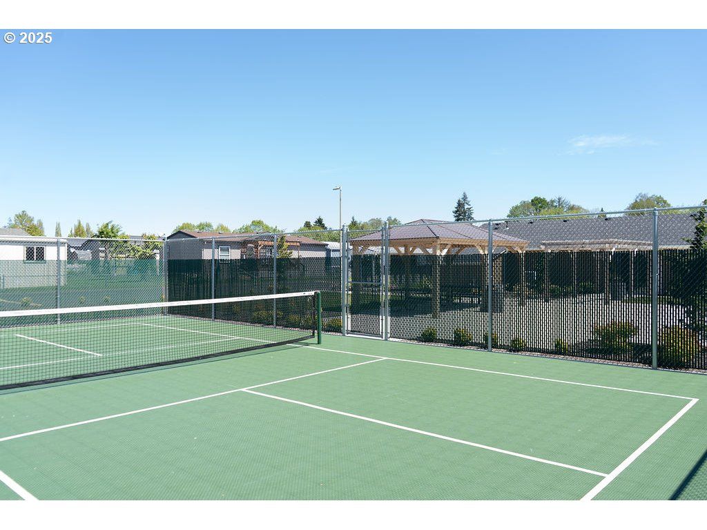 2018 Marlette mfg home is a 1568 Sq Ft, modern, move-in ready 2 bed, 2 bath with additional den/office-like area. Thoughtfully designed throughout and located in a desirable 55+ park. The open-concept living room has high ceiling and flows into the kitchen and dining area. The kitchen has hickory cabinets, granite countertops, stainless steel appliances, pantry, eating bar, and a convenient dining area - perfect for entertaining. The large primary bedroom includes a walk-in closet, en-suite bathroom with granite counters, walk-in shower, and soaking tub. A sliding glass door leads to a covered deck, ideal for relaxing or enjoying your morning coffee year-round. Exterior features include a carport with attached storage shed and partially fenced backyard. Community amenities include clubhouse, gardening space, pool table, and pickleball court. This home is a must-see to truly appreciate!