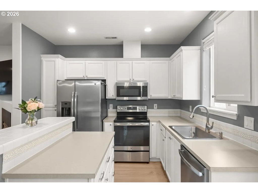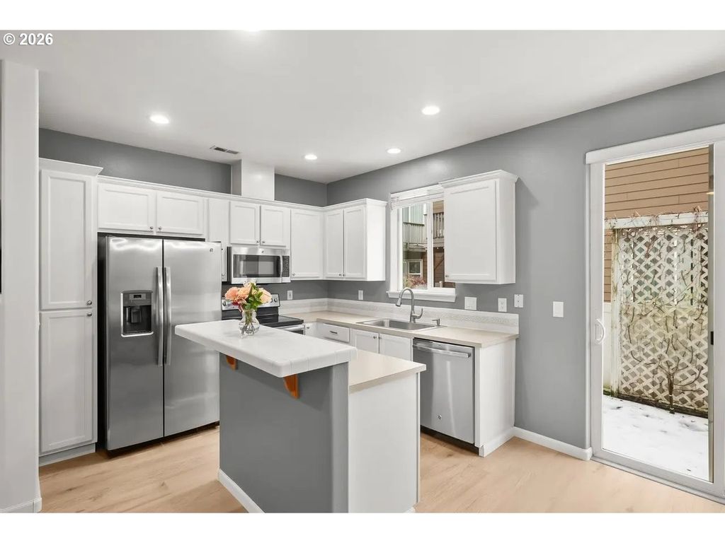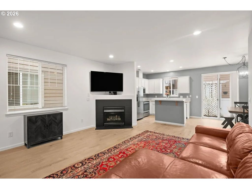 Stunning end-unit townhome in the highly sought-after Liberty Oaks neighborhood of Tualatin. This beautifully updated 3-bedroom, 2.1-bath home offers a bright, modern feel with abundant natural light and a spacious open floor plan. The open kitchen is a standout, featuring an island with eat-bar seating and seamless flow to the dining and living spaces - perfect for everyday living and entertaining. The inviting living room is anchored by a cozy gas fireplace, creating a warm and welcoming atmosphere.The primary suite features vaulted ceilings, a walk-in closet, and an updated en-suite bath. Two additional bedrooms with generous closets share a full bathroom, and the conveniently located laundry room is on the same level. Durable vinyl plank flooring runs throughout the main level, and thoughtful updates include a newer air conditioner, updated flooring, newer siding, a roof replaced approximately two years ago, and exterior paint completed 4 years ago.Enjoy outdoor living with a private patio just off the kitchen. Just steps from the train, restaurants, shops, and grocery stores, and minutes from Tualatin Community Park, Tualatin High School, downtown Tualatin, Bridgeport Village, Cook Park, and Tualatin Country Club. Easy access to I-5 and Tualatin-Sherwood Road makes commuting a breeze.A rare opportunity to own a move-in-ready home in one of Tualatin's most desirable locations.